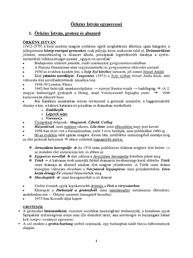 Irodalom 12 Iii Magyar Irodalom 1945 Utan Egyperces Novellak