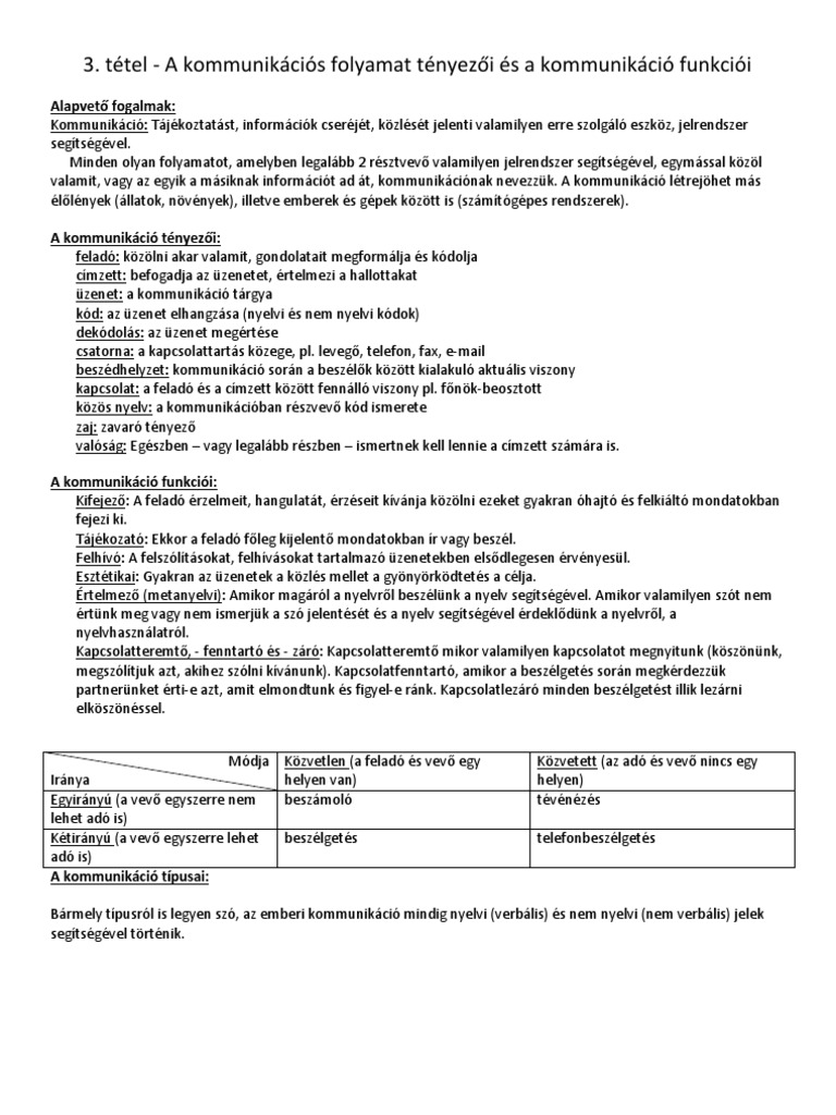 A Kommunikációs Folyamat Tényezői és Funkciói Tétel