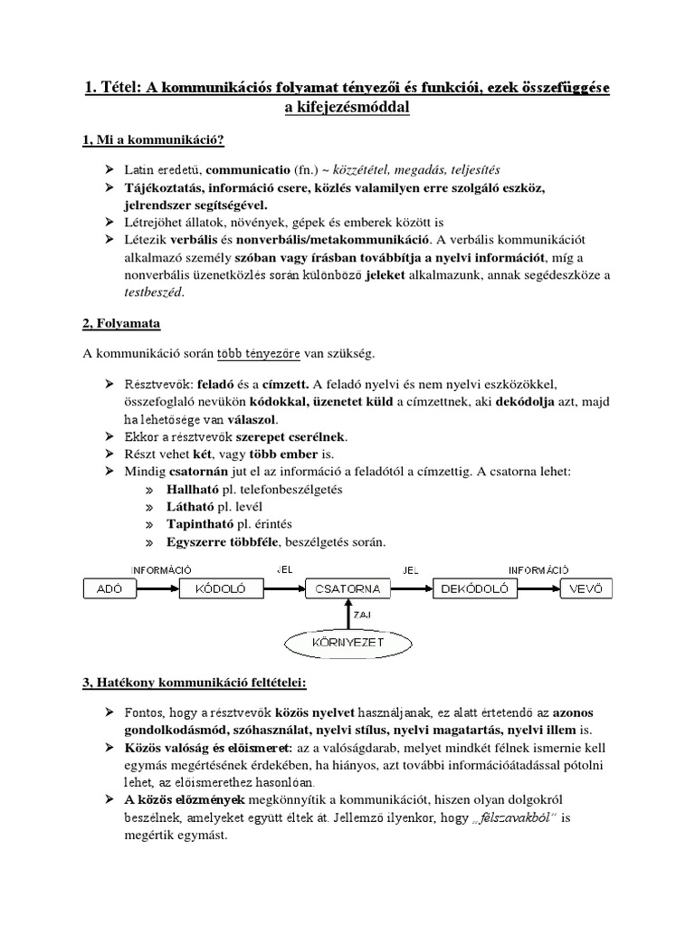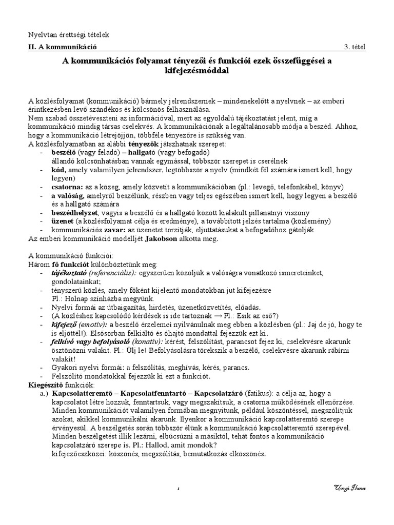 1 A Kommunikacios Folyamat Tenyezoi Es Funkcioi Ezek Osszefuggese A Kifejezesmoddal