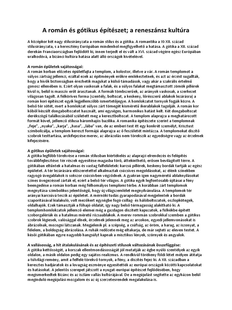 A Roman Es Gotikus Epiteszet A Reneszansz Kultura Docx