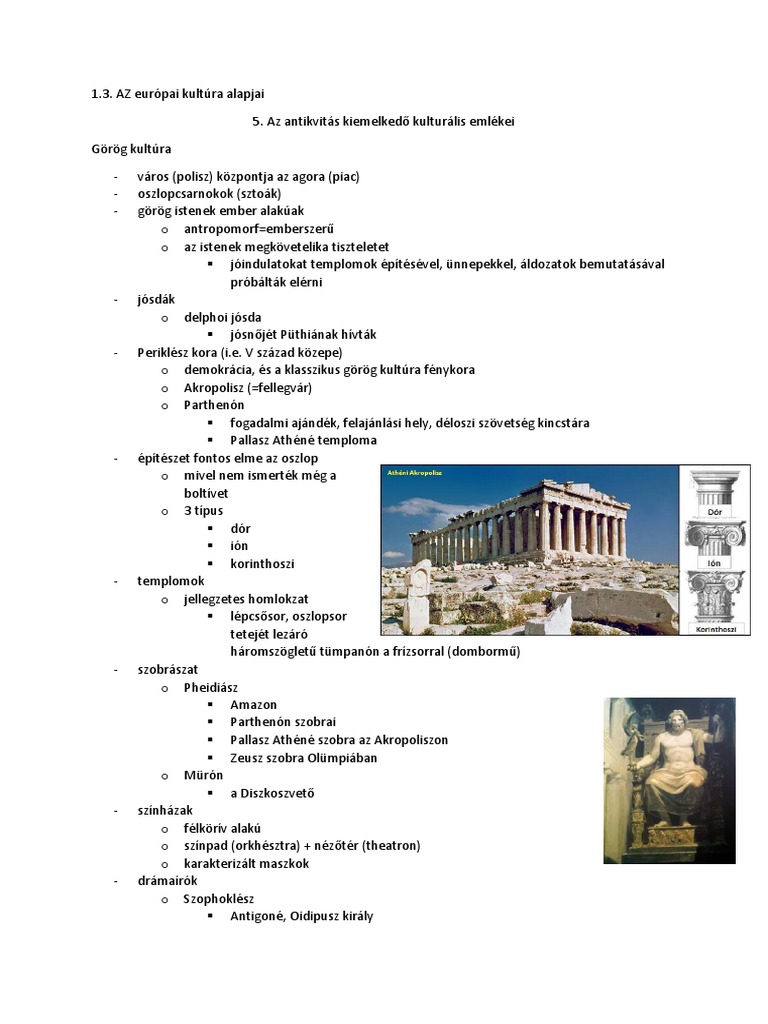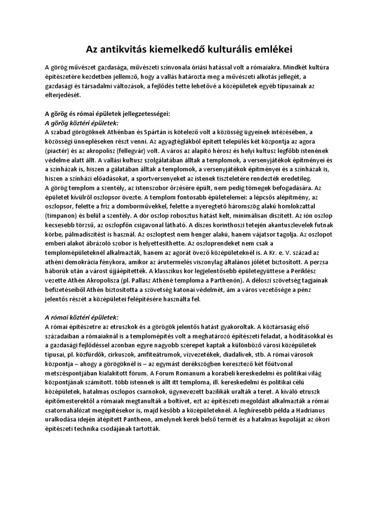 Az Antikvitas Kiemelkedo Kulturalis Emlekei Docx