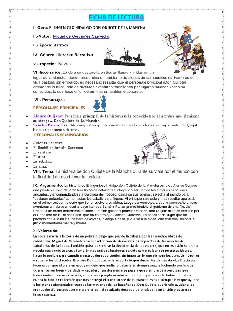 Ficha De Lectura Don Quijote Personas