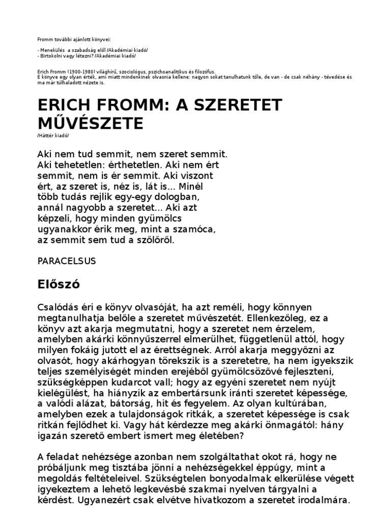 Erich Fromm A Szeretet Muveszete Hatter Kiado Pdf Free Download