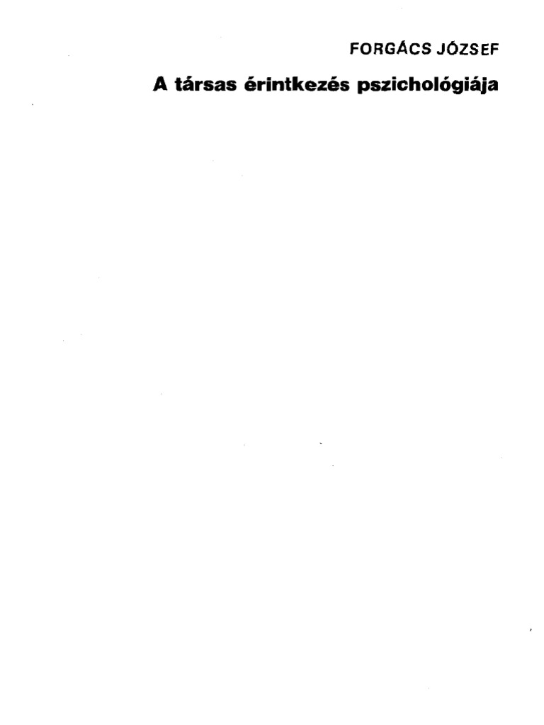 Forgács József A Társas érintkezés Pszichológiája Pdf