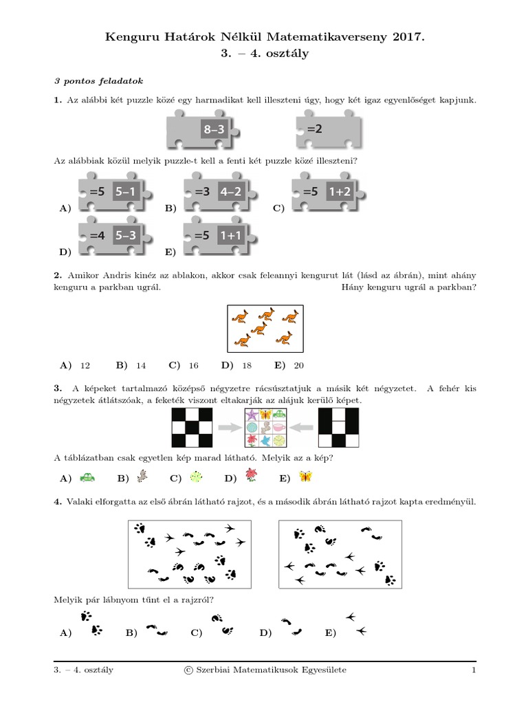 Kenguru Hatarok Kenguru Matematika Verseny Feladatok 3 Osztály Megoldások 2018