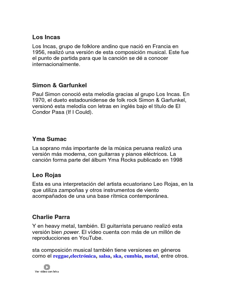 Condor Pasa Letras En Quechua Y Espanol Youtube