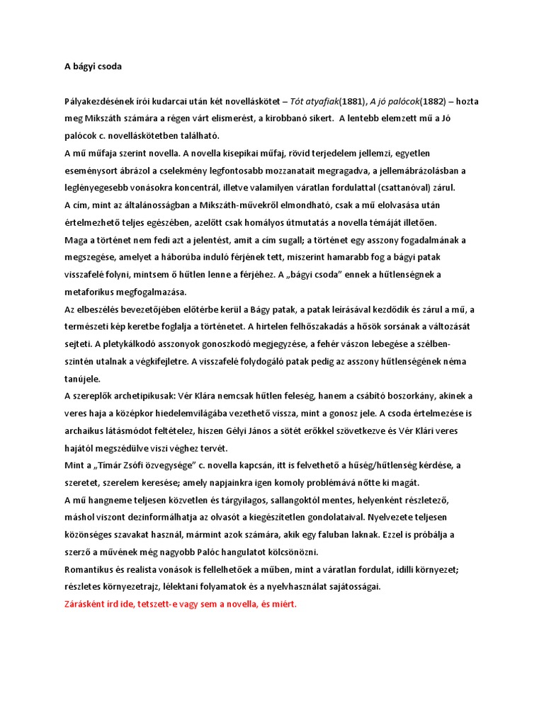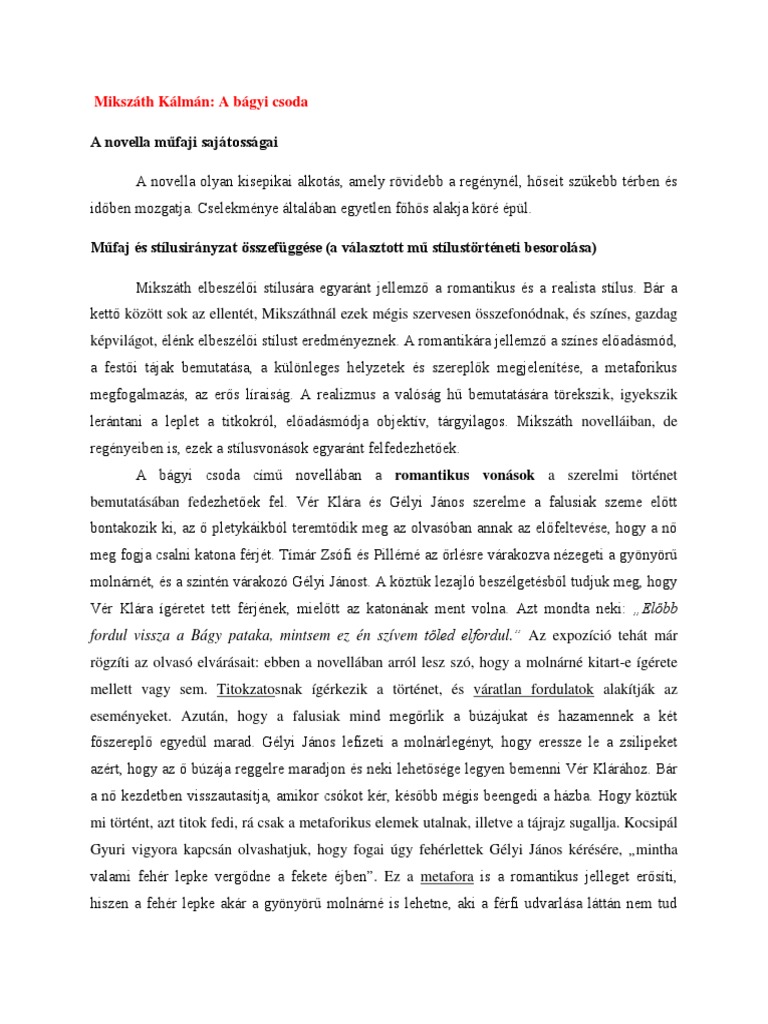 Erettsegi Irodalom Mikszath Kalman A Bagyi Csoda Wattpad