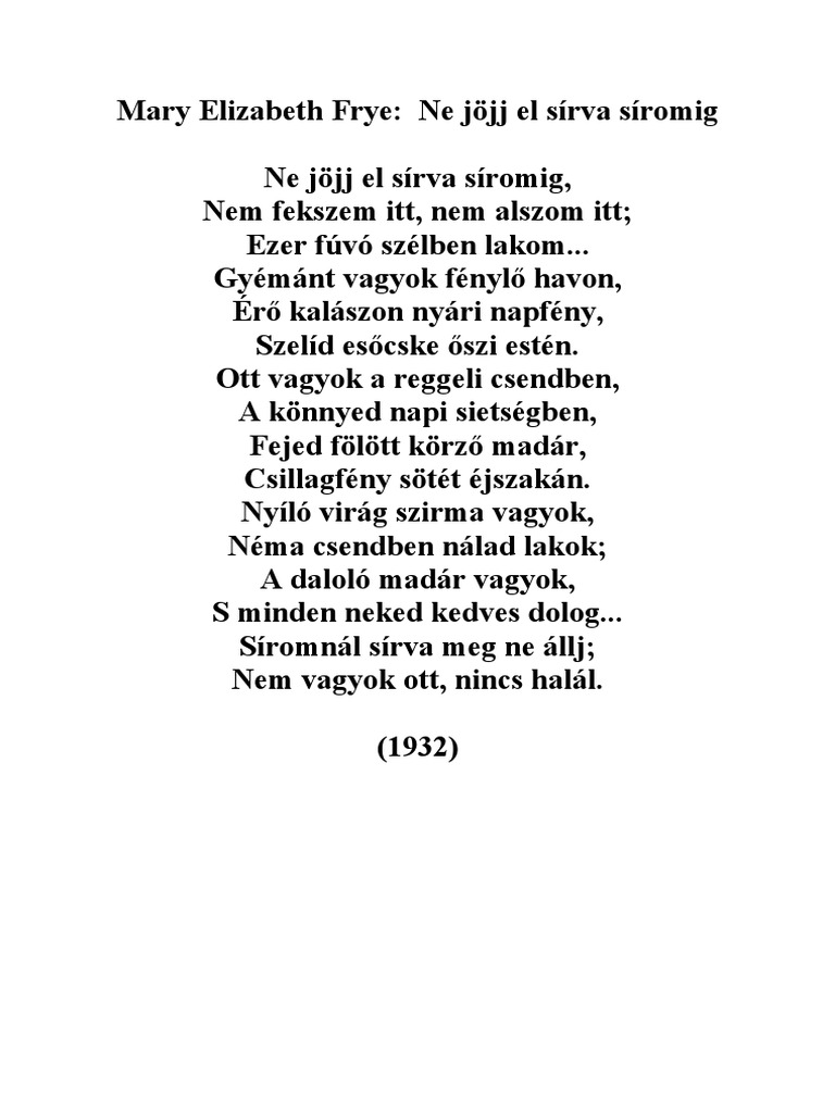 Mary Elizabeth Frye Ne Jojj Sirva Siromig Szeva Oldala