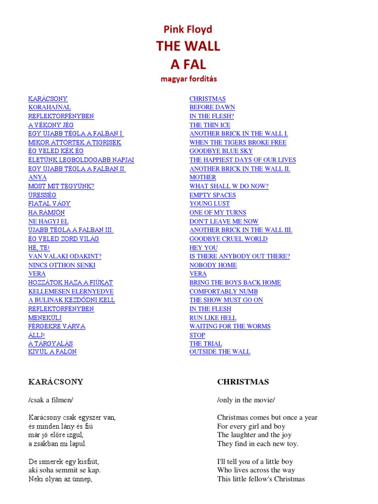 Pink Floyd Another Brick In The Wall Dalszoveg Angolul Es Magyarul